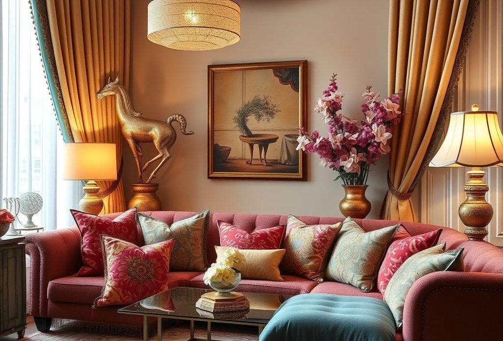 | Dodatki glamour | Błyszczące powierzchnie, eleganckie detale, luksusowe akcenty | Kryształowe żyrandole, lustra o dekoracyjnych ramach, aksamitne sof |